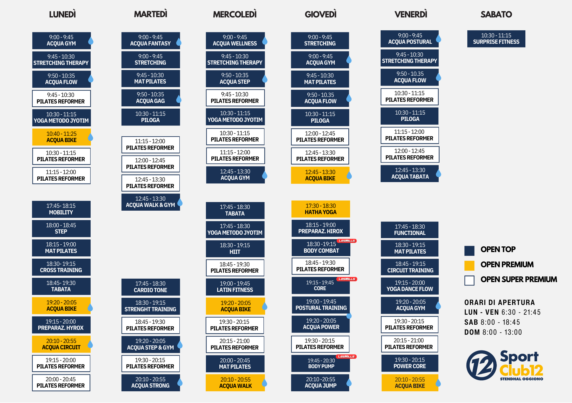 Oltre 50 attività di gruppo (terra & acqua) a settimana, coreografate con musica e guidate da trainer certificati, in collaborazione con Les Mills, nostro partner ufficiale.